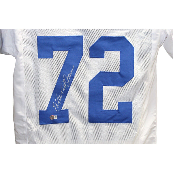 Ed Too Tall Jones Autographed/Signed Pro Style White Jersey Beckett 42614 The number in the listing title is just an inventory sku for our records and is not the authentication number. The item pictured is a stock photo unless otherwise noted. This is a Pro Style White Jersey with sewn on numbers that was personally autographed by Ed Too Tall Jones. Includes a certificate of authenticity from Beckett Authentication Services (BAS) and Denver Autographs.
