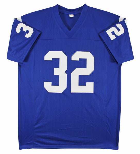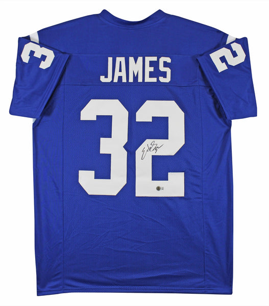 This Autographed Blue Pro Style Jersey has been Personally Signed by Edgerrin James of the Indianapolis Colts. This item is 100% Authentic to include a hologram by Beckett Authentication Services. This item will come with an affixed Beckett Authentication Services (BAS) authentication sticker, which includes a scannable QR code to verify authenticity. Please note that Beckett no longer provides serial-numbered COA cards, and the attached BAS sticker will serve as the complete authentication for this item. We conducted an autograph signing with Edgerrin James where multiples of the same item were signed. While the photographs are representative of this item, the size, placement and strength of the signature may vary. Each item is hand signed, therefore, each autograph is unique. This item can be verified through BAS. This is a X-Large sized, non-branded, custom-stitched Jersey.