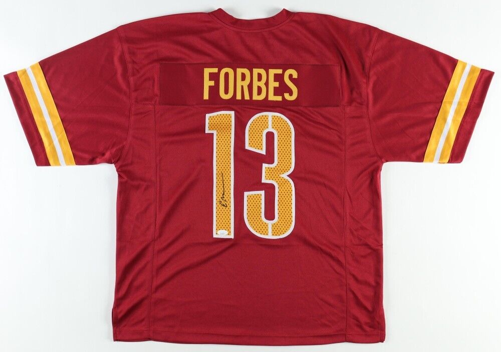 Custom on-field style jersey with everything sewn on, size adult XL. Hand-signed by Emmanuel Forbes Jr..The autograph(s) includes an official James Spence Authentication (JSA) "Signature Debut" hologram and COA. "Signature Debut" is the autographed memorabilia equivalent to a rookie card. The JSA definition of a "Signature Debut" is as follows: "Any item that is autographed and received by JSA prior to the last game of the signer's official rookie season.Authentication: JSA COA