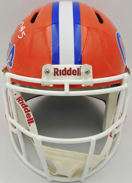 This is a Florida Gators Orange Full Size Speed Replica Helmet that has been hand signed by Emory Jones. This item has been certified authentic by PSA/DNA and comes with their tamper-proof hologram BUT is missing the matching certificate of authenticity.