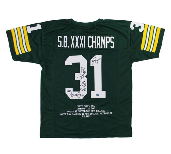 Favre/Rison/Levens/Brown/Freeman Multi-Signed Green Bay Custom Green SB Jersey