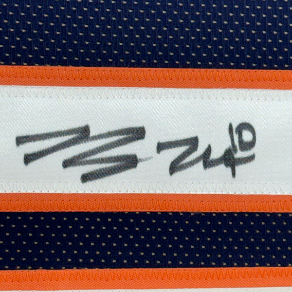 Framed Autographed/Signed Bo Nix 35x39 Denver Blue Football Jersey Beckett COA The item is professionally framed and matted with two 5x7 photos, measures 35x39 inches and is ready to be hung in your man cave! Photo and matting requests can be made.