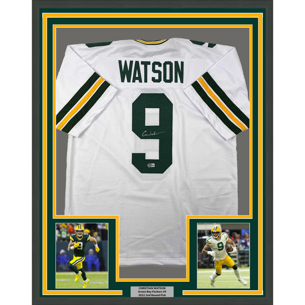 Framed Autographed/Signed Christian Watson 35x39 White Jersey Beckett BAS COA The item is professionally framed and matted with two 5x7 photos, measures 35x39 inches and is ready to be hung in your man cave! Photo and matting requests can be made.