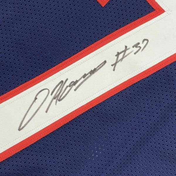 FRAMED Autographed/Signed DAMIEN HARRIS 33x42 Blue Football Jersey Beckett COA The item is professionally framed & matted with two 8x10 photos, measures 33"x42" and is ready to be hung in your man cave! NOTE: COA card will be mounted on the back of the frame, not inside it on top of the jersey as seen in the picture. Please allow up to 5 business days for the item to be framed, packaged safely, and picked up by UPS. Photo and matting requests can be made.