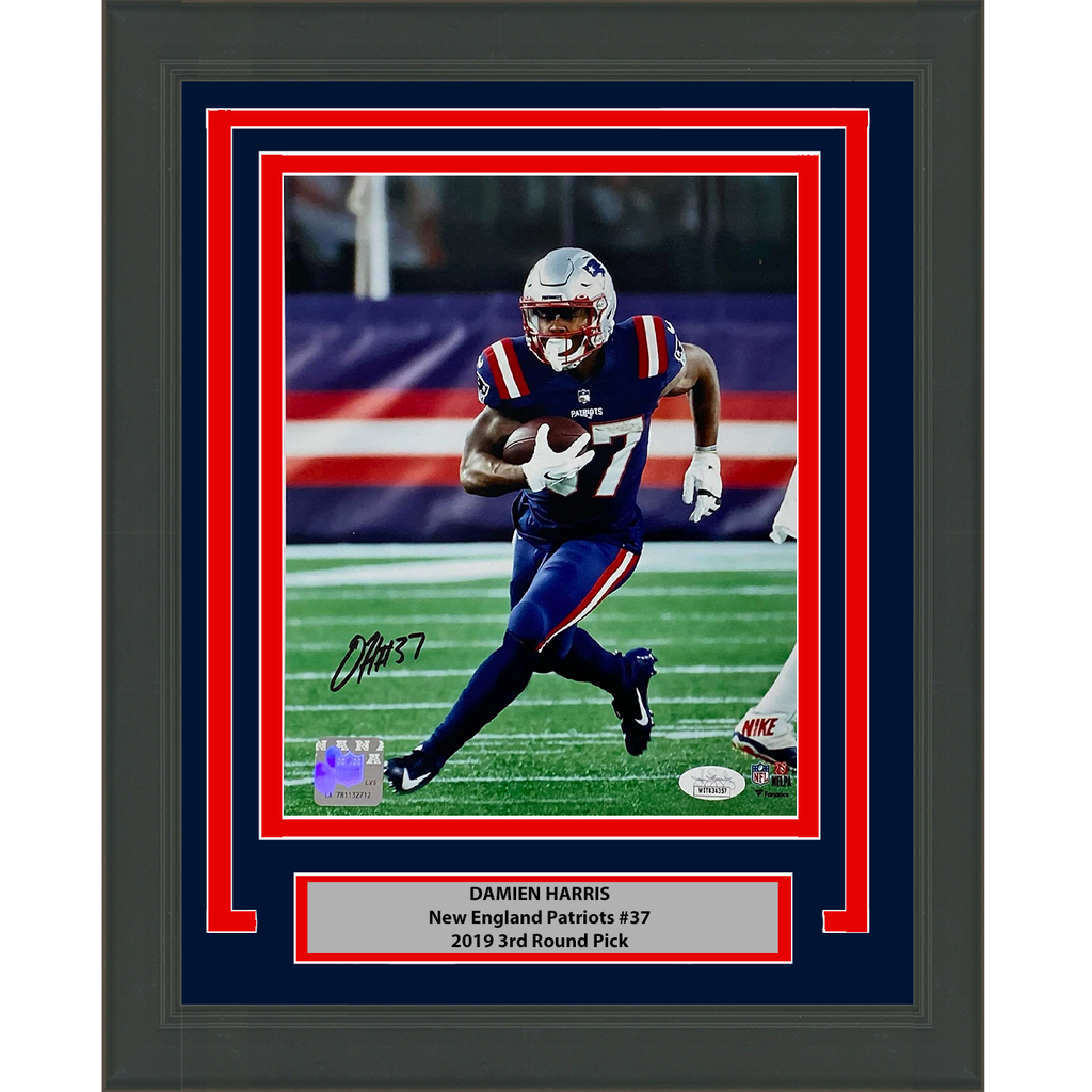 Framed Autographed/Signed Damien Harris New England Patriots 8x10 Photo JSA COA