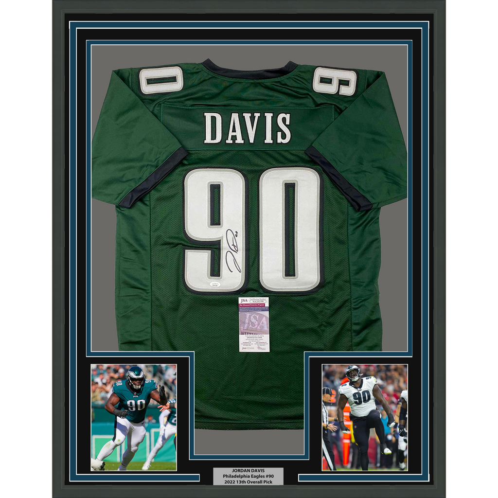 Framed Autographed/Signed Jordan Davis 33x42 Philadelphia Green Football Jersey