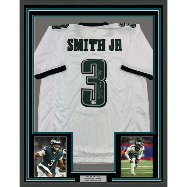 Framed Autographed/Signed Nolan Smith 35x39 Philadelphia White Jersey BAS COA The item is professionally framed & matted and is ready to be hung in your man cave! Nameplate and matting requests can be made.