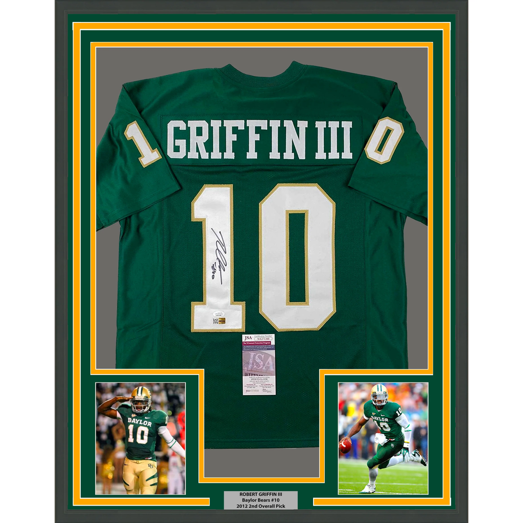 Framed Autographed/Signed Robert Griffin III RG3 33x42 Green Jersey JSA COA