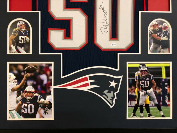Custom Framed Chase Winovich New England Patriots jersey.BAS Hologram and COA(#WE08747)The authentication is from BAS. This signature is authenticated by a representative of BAS! 100% AUTHENTIC!!! The jersey has fully stitched numbers on the front and back. It is a great item and a must for all great sports fans!This item is professionally framed, it measures 32"x40" inside , 42"x34" outside , using UV protective Acrylic glass for safe keeping and safe transport, team color matting, black moulding and hanging hooks on the back. All additional items in frame seen in pictures included. 100% ready to hang in your fan cave.