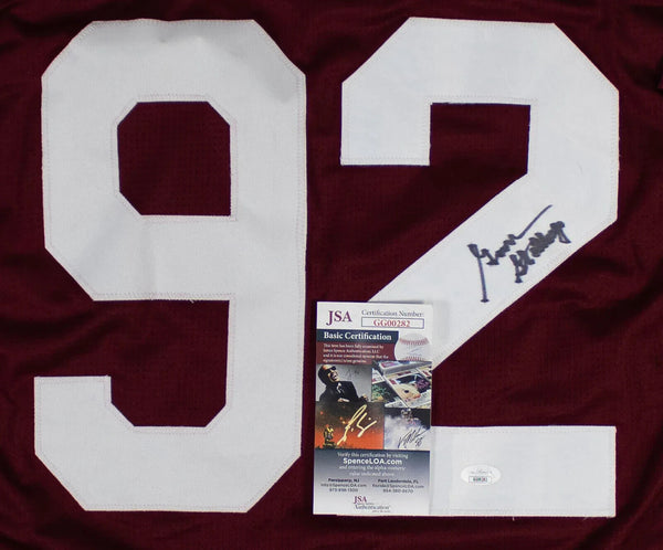 This autographed jersey has been personally hand-signed by Gene Stallings of the Alabama Crimson Tide.This autograph is certified by James Spence Authentication (JSA). It comes with the numbered hologram and matching Certificate of Authenticity.Custom on-field style jerseys are a more affordable option for autograph seekers. These jerseys do not have any brand name or tags and are made in the Philippines. They feature stitched on names and numbers and are made to look very similar to the on-field jerseys that the players wear. These custom jerseys are very commonly used in the memorabilia industry.