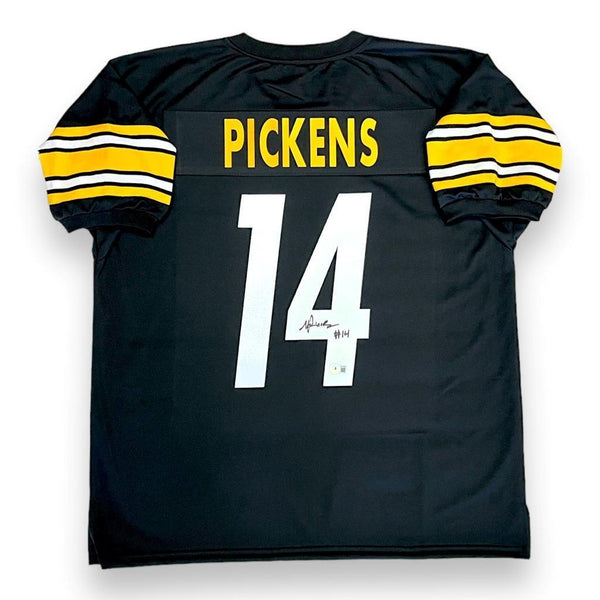 This signed item is brand new without tags or logos. This jersey is a size Large / XL. Pro tackle twill letters and numbers. This item will make a great gift or a great addition to any collection at an AFFORDABLE PRICE! ATHLETE: George Pickens ITEM: Custom Jersey AUTHENTICATION: This item comes with a Beckett serial #'ed hologram affixed to the item. To ensure authenticity, the hologram can be reviewed online. This process helps to ensure that the product purchased is authentic and eliminates any possibility of duplication or fraud. NOTE: All of our autographed jerseys are custom jerseys, unless otherwise noted. Our custom jerseys are NON-BRANDED, have NO logos, NO tags, NO patches, NO emblems. Pro tackle twill letters and numbers. The non-branded jerseys are made specifically for the player(s) to sign, for collectible purposes.