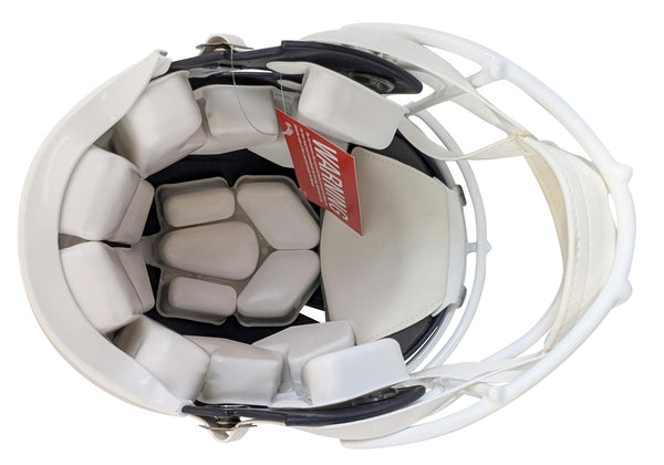 This Autographed 1981-99 Throwback Authentic Full Size Speed Proline Helmet has been Personally Signed by Lawrence Taylor & Phil Simms of the New York Giants. This item is 100% Authentic to include a hologram by Beckett Authentication Services. This item will come with an affixed Beckett Authentication Services (BAS) authentication sticker, which includes a scannable QR code to verify authenticity. Please note that Beckett no longer provides serial-numbered COA cards, and the attached BAS sticker will serve as the complete authentication for this item. This is a BAS Witnessed Protection Program item which means a Beckett Authentication Service representative was present when this item was being signed. We conducted an autograph signing with Lawrence Taylor & Phil Simms where multiples of the same item were signed. While the photographs are representative of this item, the size, placement and strength of the signature may vary. Each item is hand signed, therefore, each autograph is unique. This item can be verified through BAS Witnessed.