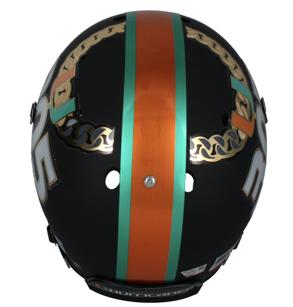 This Miami Hurricanes full size replica speed helmet has been personally hand-signed by Greg Olson. It is officially licensed by the NCAA and comes with an individually numbered, tamper-evident hologram from Fanatics Authentic. To ensure authenticity, the hologram can be reviewed online. This process helps to ensure that the product purchased is authentic and eliminates any possibility of duplication or fraud.The autograph includes an official Fanatics hologram and matching COA for authenticity purposes.Comes with a tamper-evident hologram from Fanatics Authenticated MONEY BACK GUARANTEE! If for any reason you are not completely satisfied with the quality or authenticity of your purchase, we will gladly give you a full refund or exchange, whichever you prefer up to 30 days after purchase. Please feel free to e-mail us with any questions. Thank you. Authenticator Pre-Certified Authenticator: Fanatics Authenticated History of item: Greg Olson has signed this item in the presence of a representative from Fanatics. Describe how you came to possess this item: Super Sports Center is a fully authorized dealer for Upper Deck Authenticated as well as Mounted Memories and Steiner Sports. Other information about you and / or the item: Super Sports Center strives to deliver the most authentic in sports memorabilia from trusted companies like Mounted Memories, Steiner Sports and Upper Deck Authenticated. If it exists, we can find it for you!
