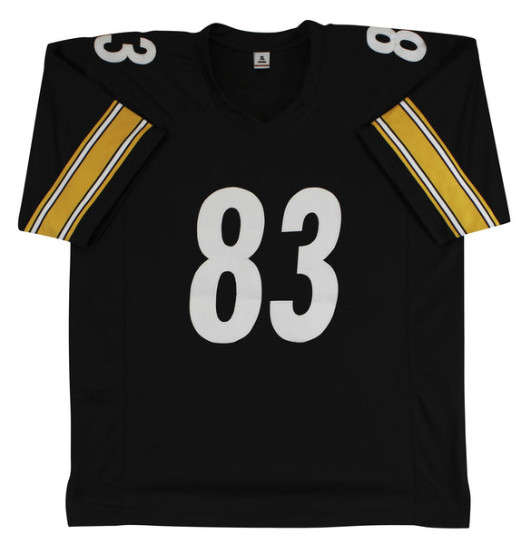 This Autographed Black Pro Style Jersey has been Personally Signed by Heath Miller of the Pittsburgh Steelers. This item is 100% Authentic to include a hologram by Beckett Authentication Services. This item will come with an affixed Beckett Authentication Services (BAS) authentication sticker, which includes a scannable QR code to verify authenticity. Please note that Beckett no longer provides serial-numbered COA cards, and the attached BAS sticker will serve as the complete authentication for this item. This is a BAS Witnessed Protection Program item which means a Beckett Authentication Service representative was present when this item was being signed. We conducted an autograph signing with Heath Miller where multiples of the same item were signed. While the photographs are representative of this item, the size, placement and strength of the signature may vary. Each item is hand signed, therefore, each autograph is unique. This item can be verified through BAS Witnessed. This is a X-Large sized, non-branded, custom-stitched Jersey.