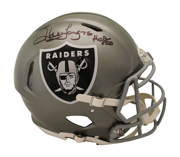 Howie Long Autographed Raiders Authentic Flash Speed Helmet HOF Beckett 35689 The number in the listing title is just an inventory sku for our records and is not the authentication number. The item pictured is a stock photo unless otherwise noted. This is a Raiders full size authentic Flash speed helmet that was personally autographed by Howie Long with HOF inscription. Includes a certificate of authenticity from Beckett Authentication Services (BAS) and Denver Autographs.