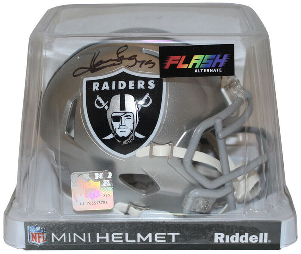 Howie Long Autographed/Signed Raiders Flash Mini Helmet Beckett 35688 The number in the listing title is just an inventory sku for our records and is not the authentication number. The item pictured is a stock photo unless otherwise noted. This is a Raiders flash mini helmet that was personally autographed by Howie Long. Includes a certificate of authenticity from Beckett Authentication Services (BAS) and Denver Autographs.