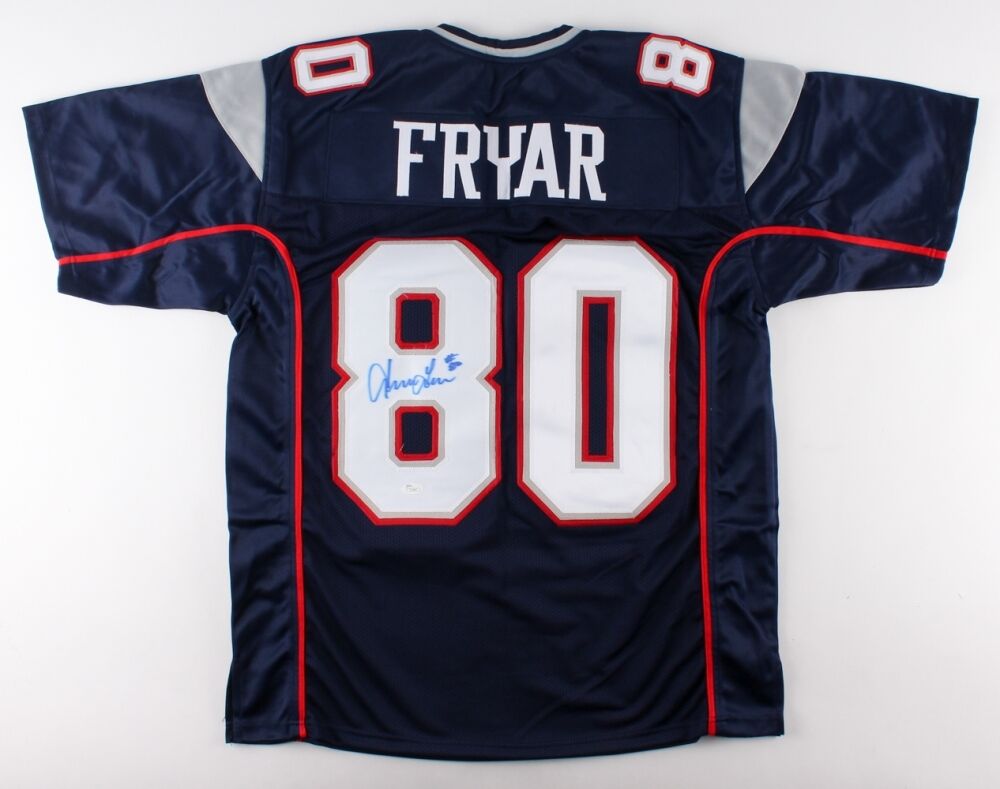 Custom on-field style jersey. Everything is sewn on, size XL. Hand-signed in blue felt-tip pen by Irving Fryer (Philadelphia Eagles, Washington Redskins, New England Patriots). The lot / autograph(s) includes an official James Spence Authentication (JSA) hologram for authenticity purposes.Authentication: JSA Hologram