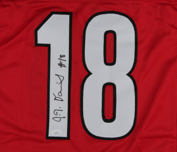 Custom on-field style jersey. Everything is sewn on, size XL. Hand-signed by J. T. Daniels.The autograph(s) includes an official James Spence Authentication (JSA) "Signature Debut" hologram and COA. "Signature Debut" is the autographed memorabilia equivalent to a rookie card. The JSA definition of a "Signature Debut" is as follows: "Any item that is autographed and received by JSA prior to the last game of the signer's official rookie season.Authentication: JSA COA