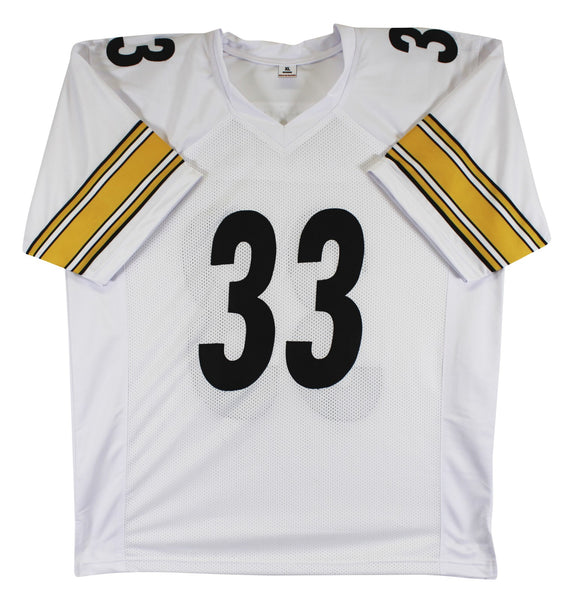 This Autographed White Pro Style Jersey has been Personally Signed by Jack Sawyer of the Pittsburgh Steelers. This item is 100% Authentic to include a hologram by Beckett Authentication Services. This item will come with an affixed Beckett Authentication Services (BAS) authentication sticker, which includes a scannable QR code to verify authenticity. Please note that Beckett no longer provides serial-numbered COA cards, and the attached BAS sticker will serve as the complete authentication for this item. This is a BAS Witnessed Protection Program item which means a Beckett Authentication Service representative was present when this item was being signed. We conducted an autograph signing with Jack Sawyer where multiples of the same item were signed. While the photographs are representative of this item, the size, placement and strength of the signature may vary. Each item is hand signed, therefore, each autograph is unique. This item can be verified through BAS Witnessed. This is a X-Large sized, non-branded, custom-stitched Jersey.
