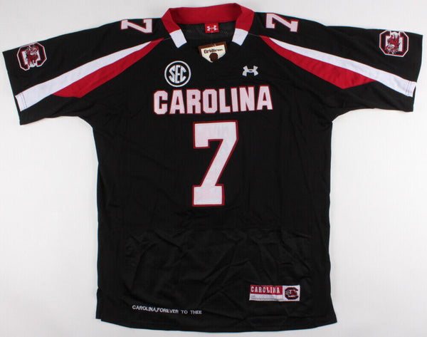 Under Armour on-field style jersey. Everything is sewn on. Hand-signed in blue felt-tip pen by Jadeveon Clowney. The lot / autograph(s) includes an official James Spence Authentication (JSA) hologram and matching COA for authenticity purposes.Authentication: JSA COA