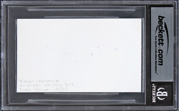This Autographed 3x5 Index Card has been Personally Signed by Trevor Lawrence of the Jacksonville Jaguars. This item is 100% Authentic, it comes slabbed and authenticated by Beckett Authentication Services. The authenticity can be verified on Beckett Authentication Services website.