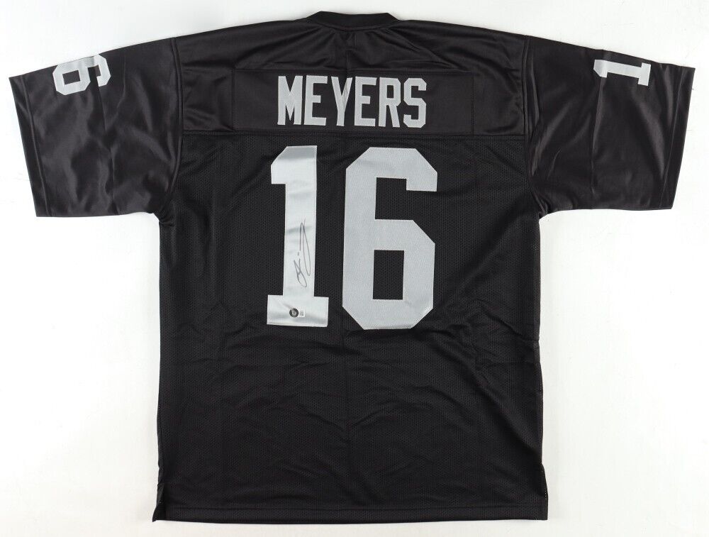 Custom on-field style jersey. Everything is sewn on, size XL. Hand-signed by Jakobi Meyers.The lot / autograph(s) includes an official Beckett Authentication Services serially numbered hologram for authenticity purposes. The signing of this item was witnessed by Beckett.Authentication: Beckett Hologram