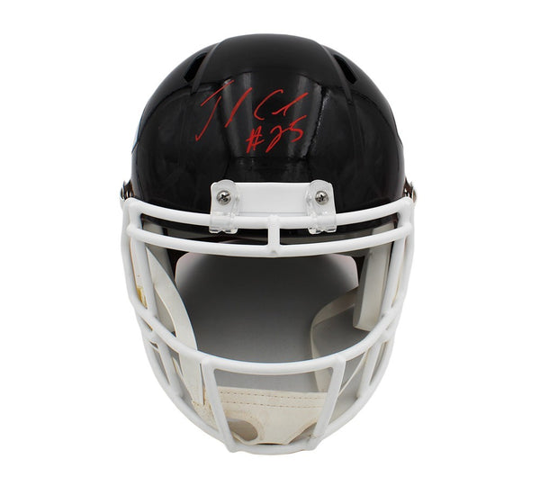 A Kansas City Chiefs Speed Replica Custom Fade NFL Helmet Hand Signed with red ink by Jamaal Charles. The item and signature are in excellent condition. Jamaal Charles is a former professional football player, widely regarded as one of the most dynamic running backs in NFL history. Charles played college football at the University of Texas before being drafted by the Kansas City Chiefs in the third round of the 2008 NFL Draft. Charles became the Chiefs' all-time leading rusher and earned multiple Pro Bowl selections. Charles retired in 2017, finishing his career with over 7,500 rushing yards and 44 touchdowns. AUTHENTICATION: The item is accompanied by a Beckett Certificate of Authenticity and a Beckett Serial Numbered and Databased Hologram