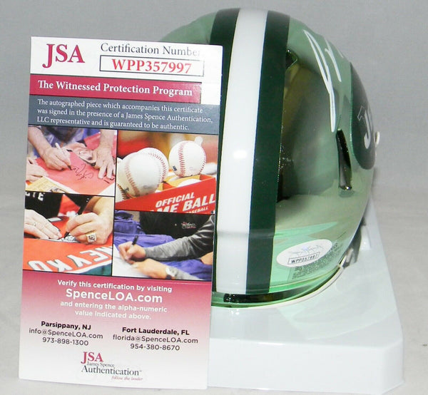 Jamal Adams, Pro Bowl safety for the New York Jets, has hand signed this Jets Riddell Speed Chrome mini helmet at a private signing. This item comes with a certificate of authenticity (COA) from JSA - James Spence Authentication and was signed in the presence of one of their representatives. You will receive a serial-numbered COA along with a matching serial-numbered sticker on the helmet. The authenticity can be verified online by entering the serial number.Item pictured may not be the exact item you will receive. It will be similar quality, and we guarantee your satisfaction.