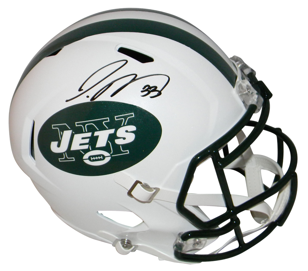 Jamal Adams, Pro Bowl safety for the New York Jets, has hand signed this Jets Riddell Speed full-size replica helmet at a private signing. This item comes with a certificate of authenticity (COA) from Beckett Authentication Services and was signed in the presence of one of their representatives. You will receive a serial-numbered COA along with a matching serial-numbered sticker on the helmet. The authenticity can be verified online by entering the serial number.Item pictured may not be the exact item you will receive. It will be similar quality, and we guarantee your satisfaction.