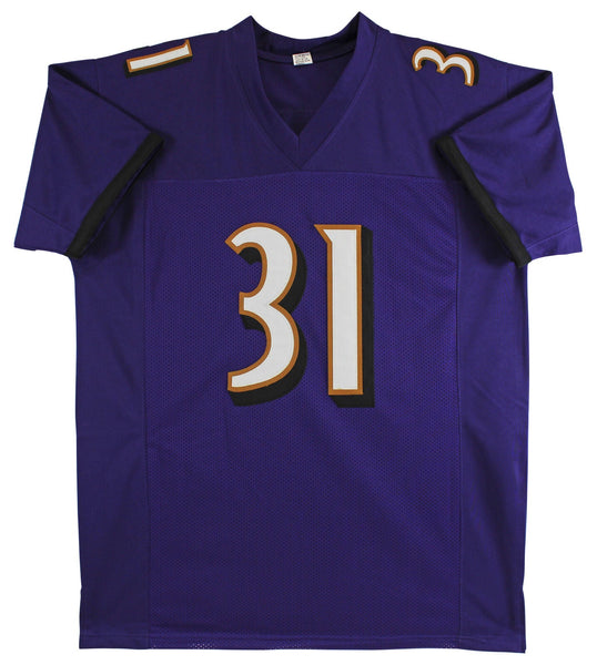 This Autographed Purple Pro Style Jersey has been Personally Signed by Jamal Lewis of the Baltimore Ravens. This item is 100% Authentic to include a Certificate of Authenticity (COA) / hologram by Beckett Authentication Services. This is a BAS Witnessed Protection Program item which means a Beckett Authentication Service representative was present when this item was being signed. We conducted an autograph signing with Jamal Lewis where multiples of the same item were signed. While the photographs are representative of this item, the size, placement and strength of the signature may vary. Each item is hand signed, therefore, each autograph is unique. This item can be verified through BAS Witnessed. This is a X-Large sized, non-branded, custom-stitched Jersey.
