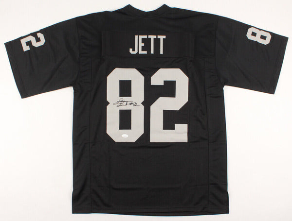 Custom on-field style jersey. Everything sewn on, size XL. Hand-signed in black felt-tip pen by James Jett. The lot / autograph(s) includes an official James Spence Authentication (JSA) hologram and matching COA for authenticity purposes. The signing of this item was witnessed by JSA.Authentication: JSA COA