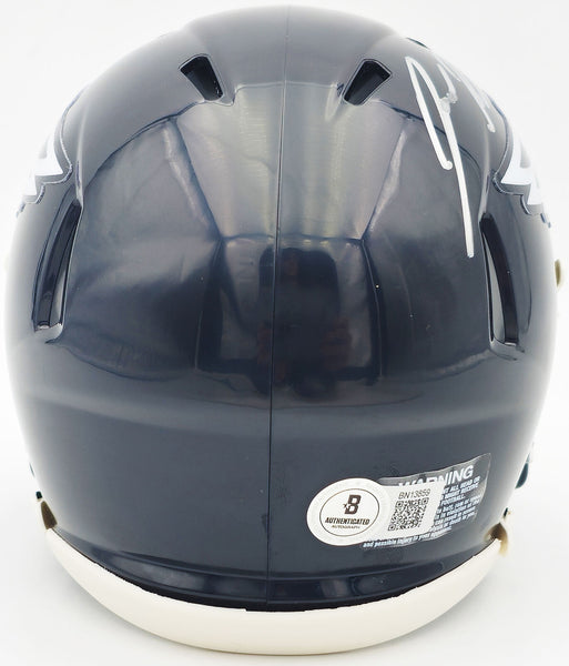 This is a Philadelphia Eagles Black Speed Mini Helmet that has been hand signed by Jason Kelce. This item has been certified authentic by Beckett Authentication (BAS) and comes with their tamper-proof QR Code sticker that can be verified on beckett-authentication.com.