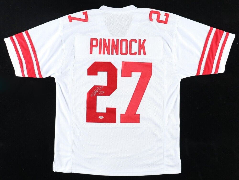 Custom on-field style jersey. Everything is sewn on, size Adult XL. Hand-signed by Jason Pinnock (New York Jets, New York Giants). The autograph includes an official PSA/DNA hologram for authenticity purposes. The signing of this item was witnessed by PSA.Authentication: PSA Hologram
