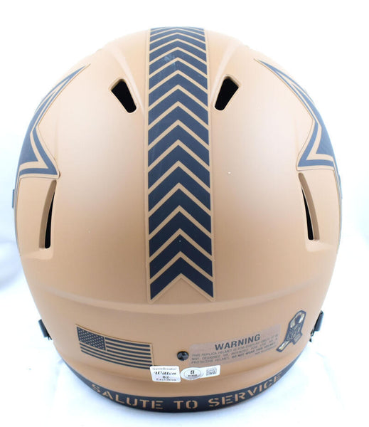 Jason Witten Autographed Dallas Cowboys F/S Salute to Service 2023 Speed Helmet- Beckett W Hologram *White This is a Hand Autograph of Jason Witten of the Dallas Cowboys on a Riddell Football Full Size Salute to Service 2023 Speed Replica Helmet. This item has a Beckett Witness Authentication, which comes with a #'ed hologram and a QR code for verification. You can view this item on the Beckett website and it shows when and where the item was signed. It was signed either at a public autograph appearance or a private signing. This is a stock photo of the item. Although you may not receive this exact item, the item you receive is virtually identical and brand new in great shape.