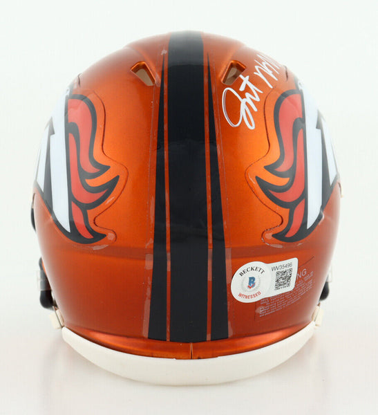 Riddell Denver Broncos Flash Alternate Speed Mini Helmet. Hand-signed by Javonte Williams.The lot / autograph(s) includes an official Beckett Authentication Services serially-numbered hologram for authenticity purposes. The signing of this item was witnessed by Beckett.Authentication: Beckett Hologram