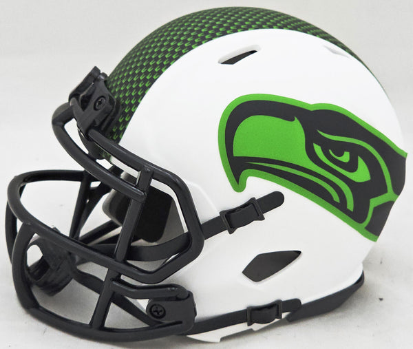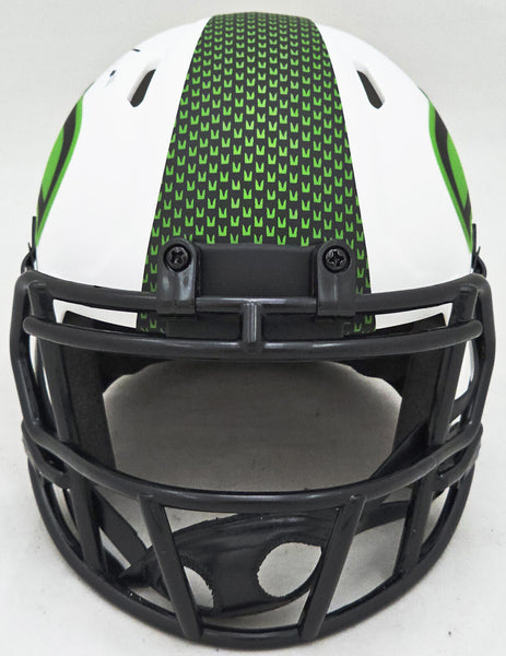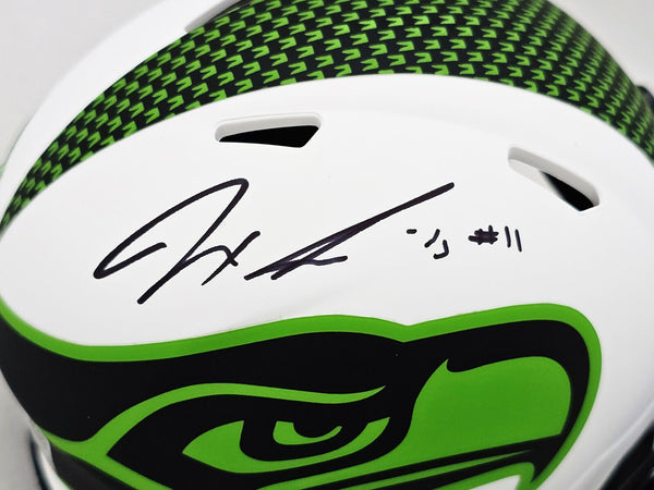 This is a Seattle Seahawks Lunar Eclipse White Speed Mini Helmet that has been hand signed by Jaxon Smith-Njigba. The Eclipse helmets are delicate and may have some marks or scratches on them. This item has been certified authentic by Fanatics and comes with their tamper-proof sticker.