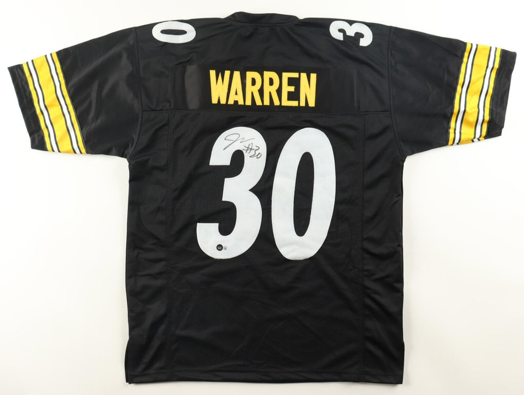 Custom on-field style jersey. Everything is sewn on, size XL. Hand-signed by Jaylen Warren.The lot / autograph(s) includes an official Beckett Authentication Services serially-numbered hologram and QR Code card for authenticity purposes.Authentication: Beckett Hologram with QR Code card