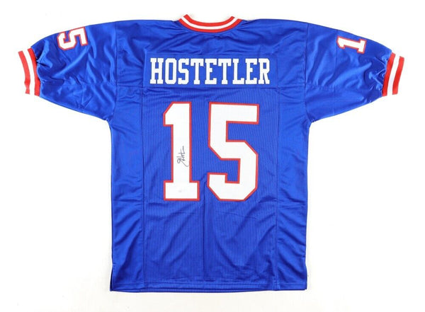 Custom on-field style jersey. Everything is sewn on, size XL. Has been hand-signed by Jeff Hostetler.The autograph(s) includes an official James Spence Authentication (JSA) hologram and matching COA for authenticity purposes.Authentication: JSA COACustom on-field style jerseys are a more affordable option for autograph seekers. These jerseys do not have any brand name or tags and are made in the Philippines. They feature stitched on names and numbers and are made to look very similar to the on-field jerseys that the players wear. These custom jerseys are very commonly used in the memorabilia industry.