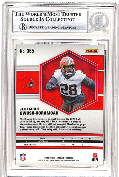 Jeremiah Owusu-Komamoah Signed 2021 Panini Mosaic #365 Beckett 38726 The number in the listing title is just an inventory sku for our records and is not the authentication number. The item pictured is a stock photo unless otherwise noted. This is a slabbed 2021 Panini Mosaic #365 Trading Card that was personally autographed by Jeremiah Owusu-Komamoah. Includes a certificate of authenticity from Beckett Authentication Services (BAS) and Denver Autographs.