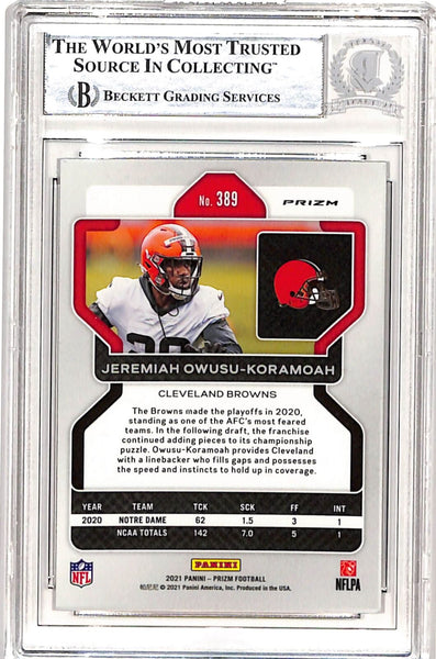 Jeremiah Owusu-Komamoah Signed 2021 Panini Silver #389 Beckett 38724 The number in the listing title is just an inventory sku for our records and is not the authentication number. The item pictured is a stock photo unless otherwise noted. This is a slabbed 2021 Panini Silver Prizm #389 Trading Card that was personally autographed by Jeremiah Owusu-Komamoah. Includes a certificate of authenticity from Beckett Authentication Services (BAS) and Denver Autographs.