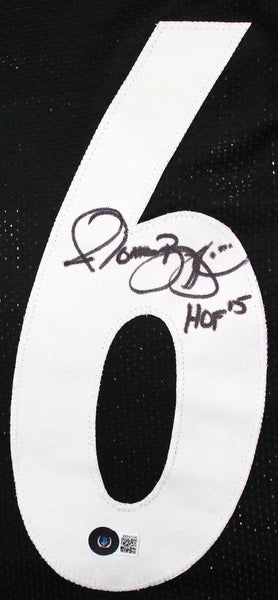 Jerome Bettis Autographed Black Pro Style Jersey w/HOF- Beckett W Hologram *Black THIS IS NOT AN NFL JERSEY. THIS HAS NO TAGS, NO LOGOS, NO EMBLEMS. This is a hand autograph of Jerome Bettis on a Custom Made (non-name brand) Authentic Style Jersey with stitched letters and numbers. Inscribed HOF. This item has a Beckett Witnessed Authentication, which comes with a numbered hologram and a QR code for verification. You can view this item on the Beckett Authentication website and it shows when and where the item was signed. It was signed either at a public autograph appearance or a private signing. This is a stock photo of the item. Although you may not receive this exact item, the item you receive is virtually identical and brand new in great shape. Jersey size is XL.