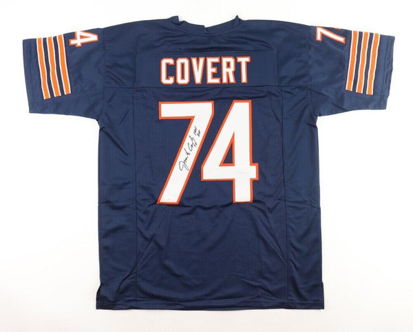 Custom on-field style jersey. Everything is sewn on, size XL. Hand-signed in black felt-tip pen by Jim Covert. The lot / autograph(s) includes an official James Spence Authentication (JSA) hologram and matching COA for authenticity purposes. The signing of this item was witnessed by JSA.Authentication: JSA COA
