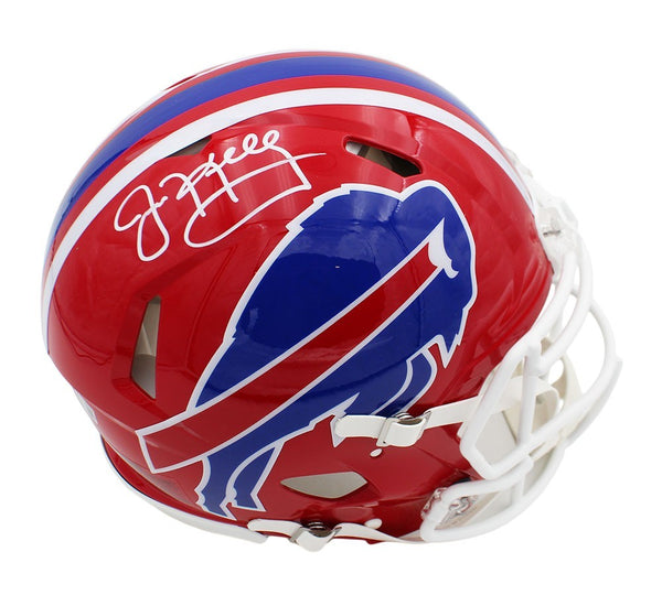 A Buffalo Bills Speed Authentic Throwback 1987-2001 NFL Helmet hand signed by Jim Kelly. The item and signature are in excellent condition. Jim is a former quarterback who played for eleven seasons with the Buffalo Bills. He is a 5x Pro Bowler and was inducted into the Pro Football Hall of Fame in 2002. AUTHENTICATION: The items is accompanied by a Beckett Serial Numbered and Databased Hologram