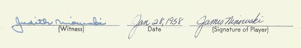 Jim Ninowski Cleveland Browns Signed/Autographed 1958 NFL Injury Clause. The Seller guarantees that this signature will pass all Authentication processes.