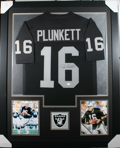 JIM PLUNKETT AUTOGRAPHED & PROFESSIONALLY FRAMED PRO-STYLE JERSEY(Occasionally our own stock pictures are used at times due to quantity of framing, all frames will look identical as the one pictured)Item is accompanied with a Certificate of Authenticity issued by Beckett and corresponding tamper proof hologram on the jersey.THE FRAMED JERSEY MEASURES 35"x 44" & COMES WITH THE FOLLOWING:-UV Protected Acrylic-Triple Acid Free Team Colored Matting-2 High Quality 8"x10" Photos-Team Logo