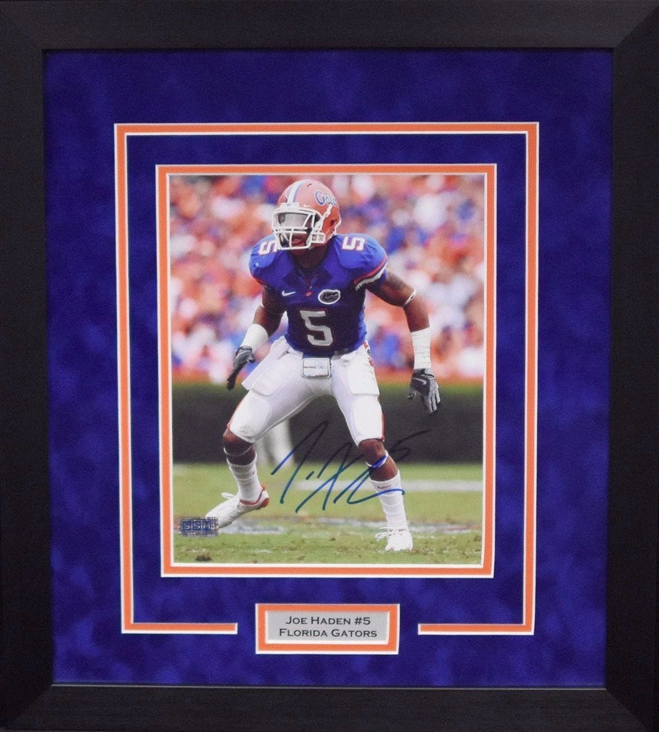 Joe Haden, former All-American cornerback for the Florida Gators, has hand signed this 8x10 photo at a private signing. It comes professionally framed in a black wood frame and double matted in Florida Gators colors. This item comes with a certificate of authenticity (COA) from Signature Sports Marketing, one of the leaders in the industry. You will receive a paper COA along with matching serial-numbered holograms.Item pictured may not be the exact item you will receive. It will be similar quality, and we guarantee your satisfaction.