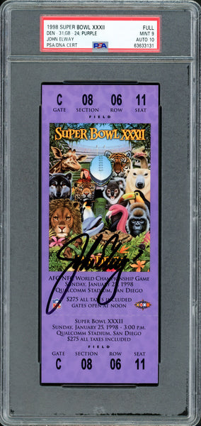 John Elway Super Bowl Ticket Broncos PSA 9 Gem 10 Auto PSA/DNA 63633131