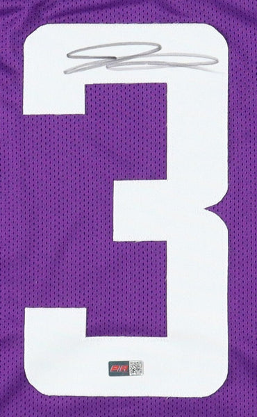 Custom on-field style jersey. Everything is sewn on, size Adult XL. Hand-signed in black felt-tip pen by Jordan Addison.This autograph is certified by Players Ink. It comes with the numbered authentication hologram with a QR code that verifies the authentication on the Players Ink website. Scan the QR code with your mobile phone to verify the authenticity.Authentication: PIA Scannable Hologram