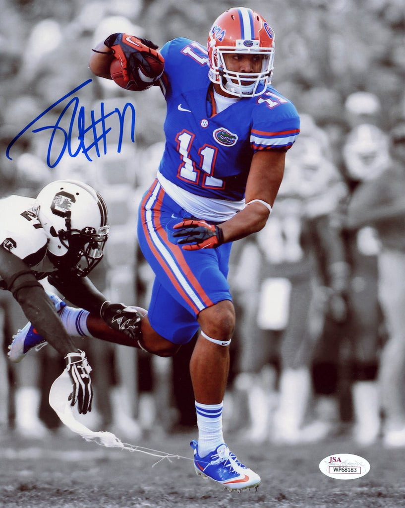 Jordan Reed, former star tight end for the Florida Gators, has hand signed this 8x10 photo at a private signing. This item comes with a certificate of authenticity (COA) from JSA - James Spence Authentication and was signed in the presence of one of their representatives. You will receive a serial-numbered COA along with a matching serial-numbered sticker on the photo. The authenticity can be verified online by entering the serial number.Item pictured may not be the exact item you will receive. It will be similar quality, and we guarantee your satisfaction.