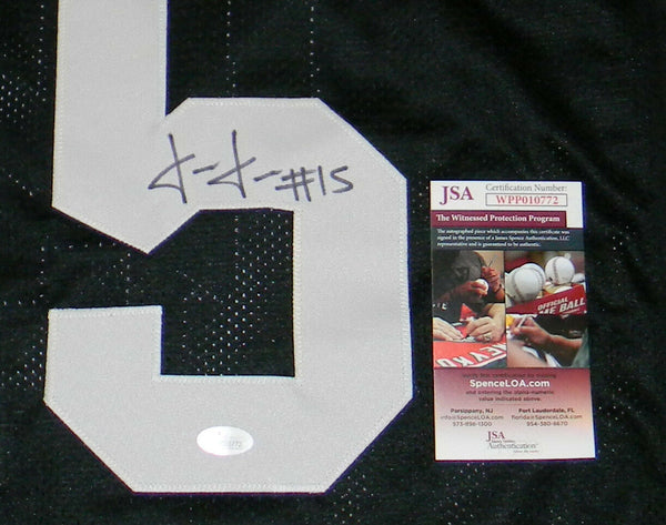 Josh Jackson, former All-American cornerback for the Iowa Hawkeyes, has hand signed this black custom jersey at a private signing. Jersey is size XL and all letters/numbers are sewn-on. This item comes with a certificate of authenticity (COA) from JSA - James Spence Authentication and was signed in the presence of one of their representatives. You will receive a serial-numbered COA along with a matching serial-numbered sticker on the jersey. The authenticity can be verified online by entering the serial number.Item pictured may not be the exact item you will receive. It will be similar quality, and we guarantee your satisfaction.